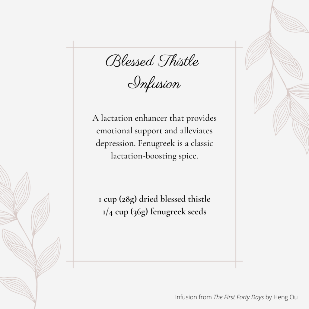 There are so many great healing herbs that can be used to help the female body through the postpartum recovery phase. Different herbs can be used as bath soaks, tea blends and infusions. I’ve listed a wonderful assortment of herbs to help with lactation and uterine support for the postpartum body – you can check that post out here.