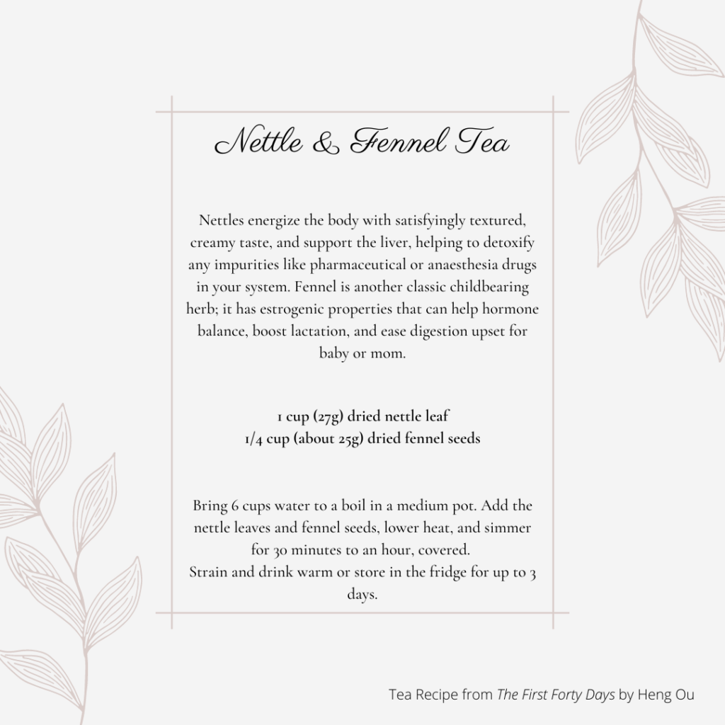 One of my favourite books, The First Forty Days by Heng Ou, has a great section on tea blends and infusions. I pulled a few of my favourites to share with you here. All of these herbs can be purchased online or in certain stores – I’ve listed a few of my favourites under the recipes.